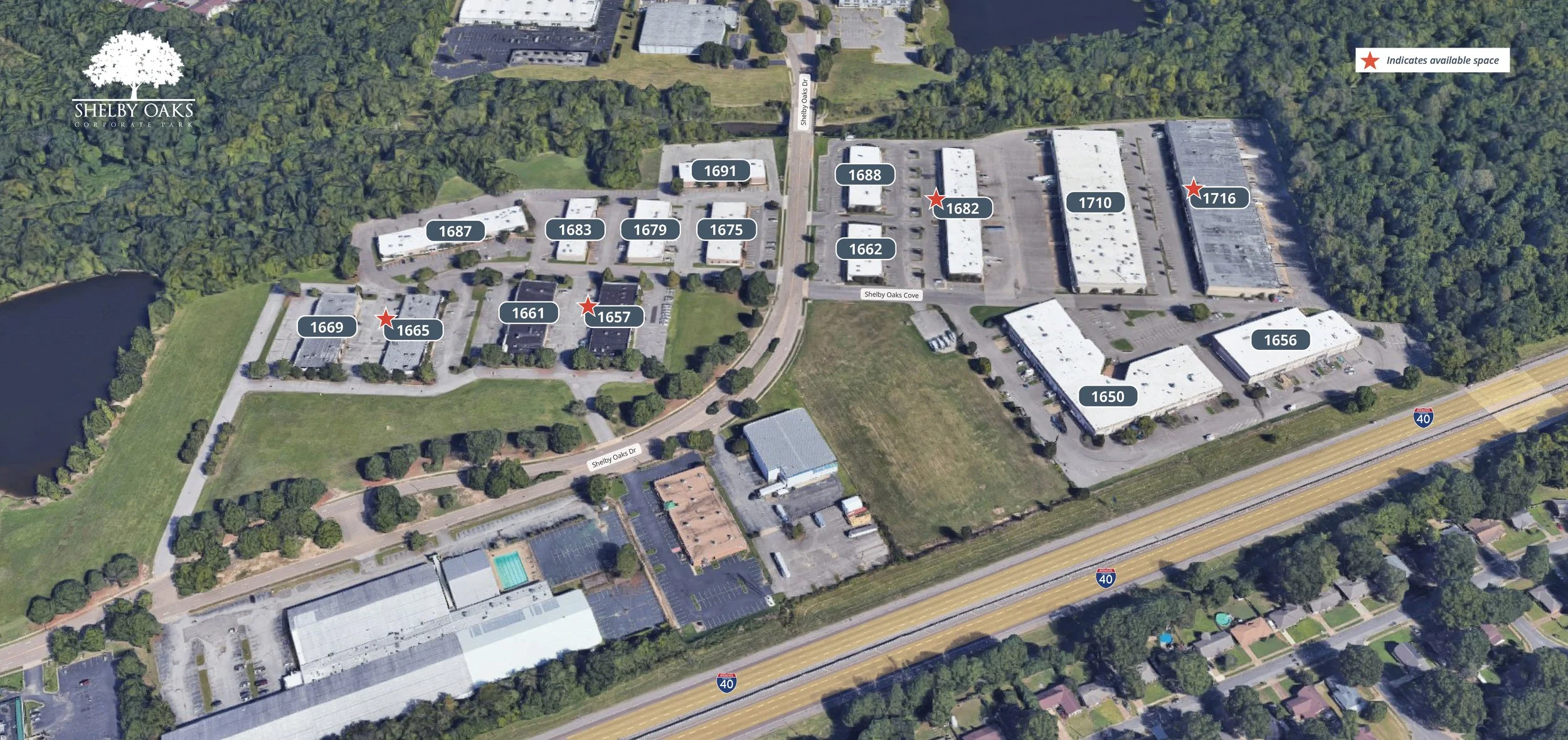 Shelby Oaks Corporate Park consists of 16 buildings with excellent accessibility. Located northeast of Downtown Memphis - Shelby Oaks provides a flexible destination for connected companies of all sizes. The park offers an upscale environment with a diverse mix of office and warehouse space that is convenient to everywhere in Memphis. Shelby Oaks is ideally located off of I-40 and Sycamore View, serving more than 630,000 people within a 15 minute drive.